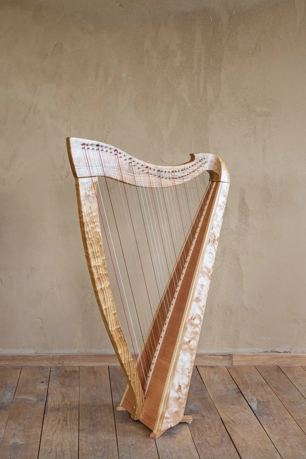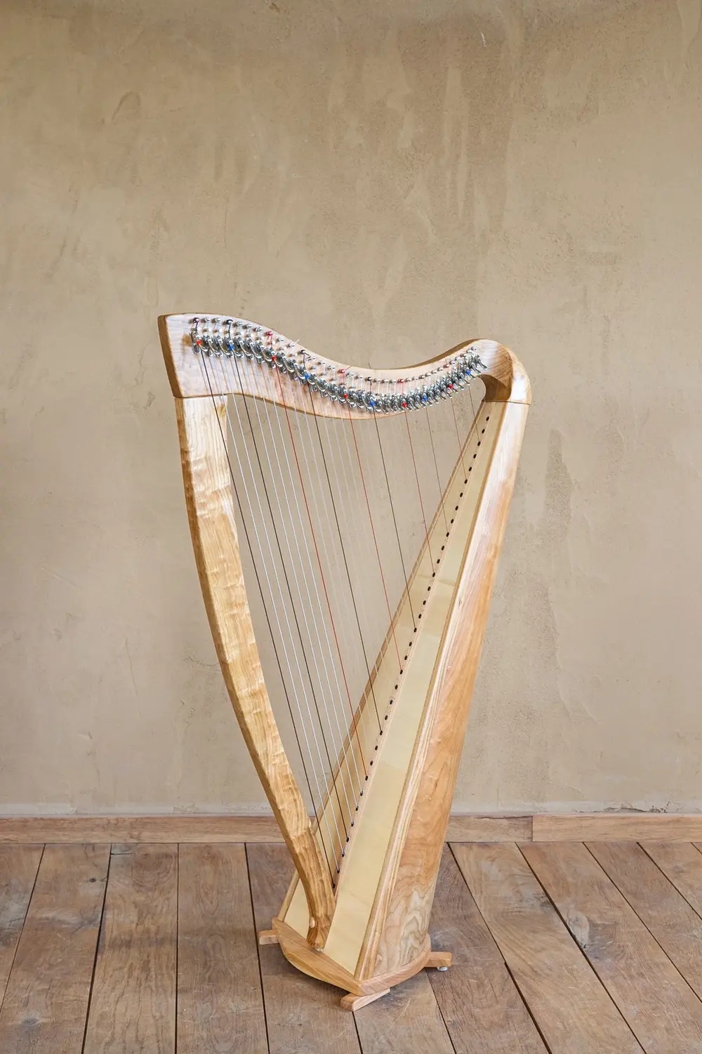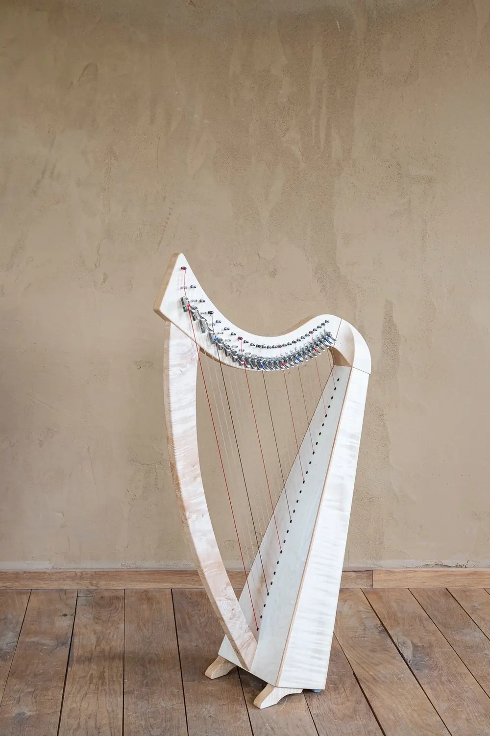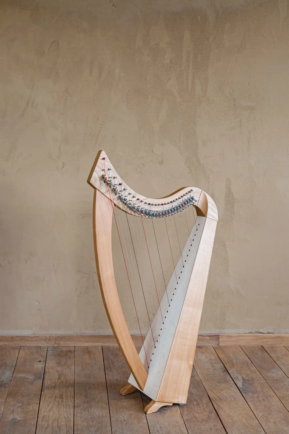 Das Modell ‚Jonas‘ ist eine ideale Reiseharfe, die sich nur beim Transport klein macht und durch ihren starken Klang besticht.