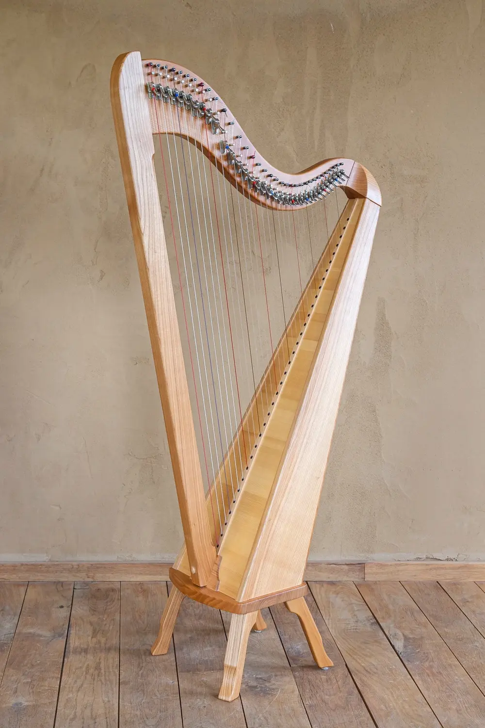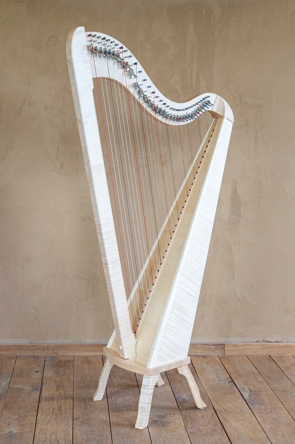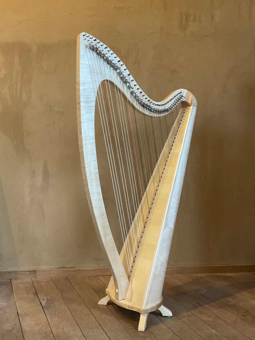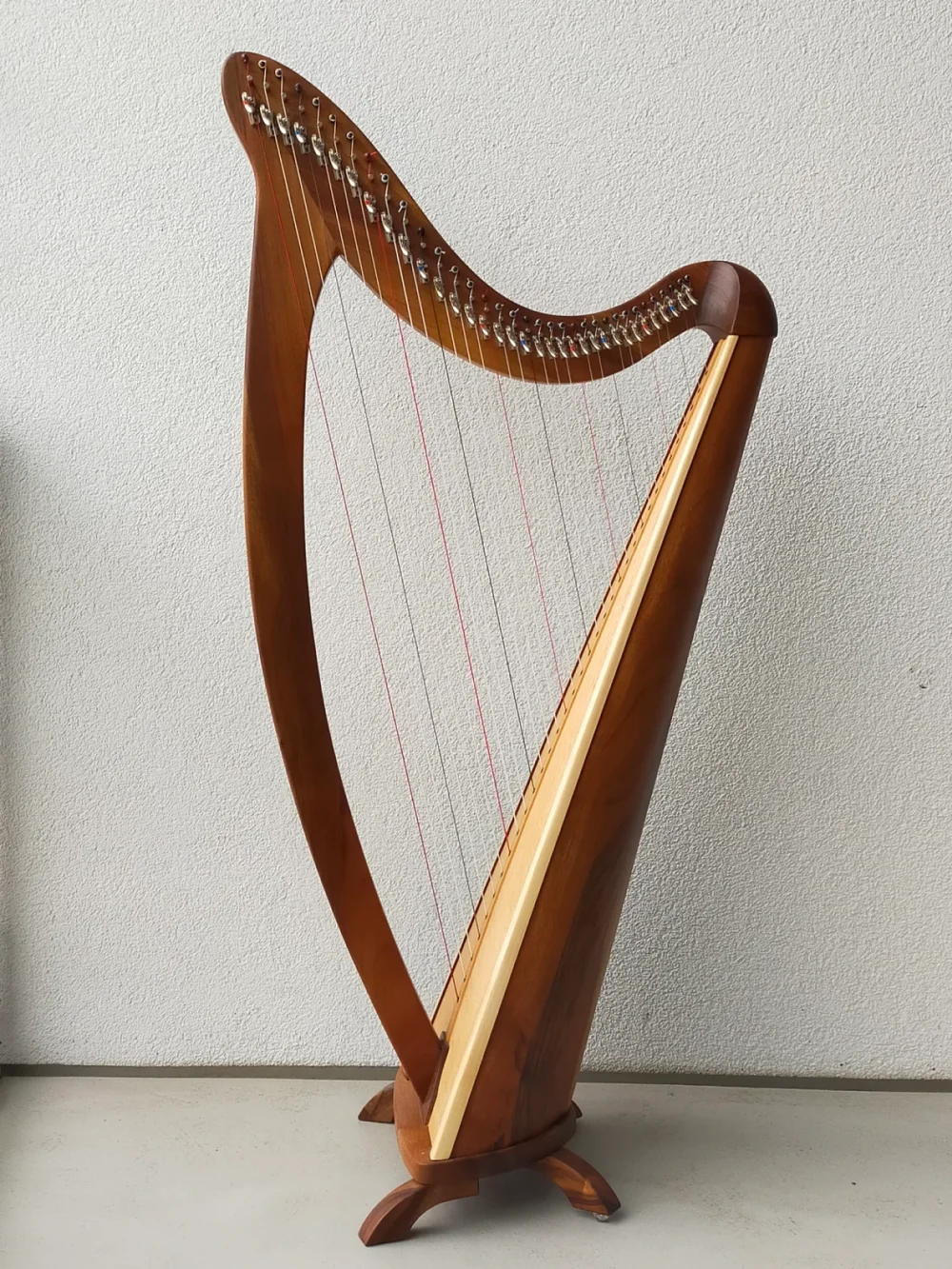 Das Modell ‚Jonas‘ ist eine ideale Reiseharfe, die sich nur beim Transport klein macht und durch ihren starken Klang besticht.