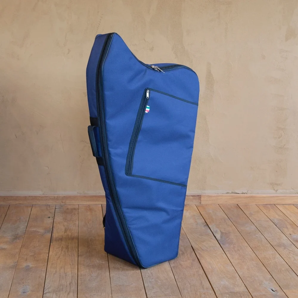 Robuste und passgenaue Harfentasche für unser Modell „Michel“. Mit praktischem Rucksacksystem.