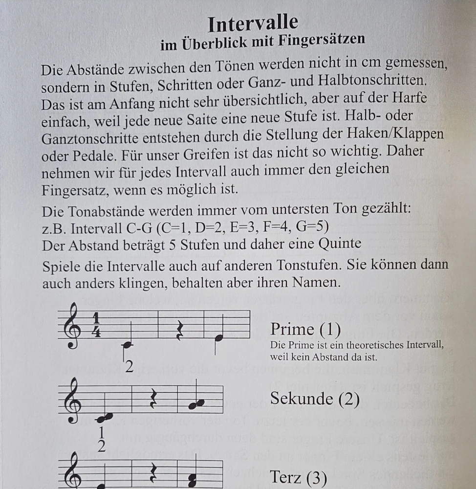 Das Heft enthält Spielstücke zu den Intervallen als Ergänzung zu vielen Harfenschulen.