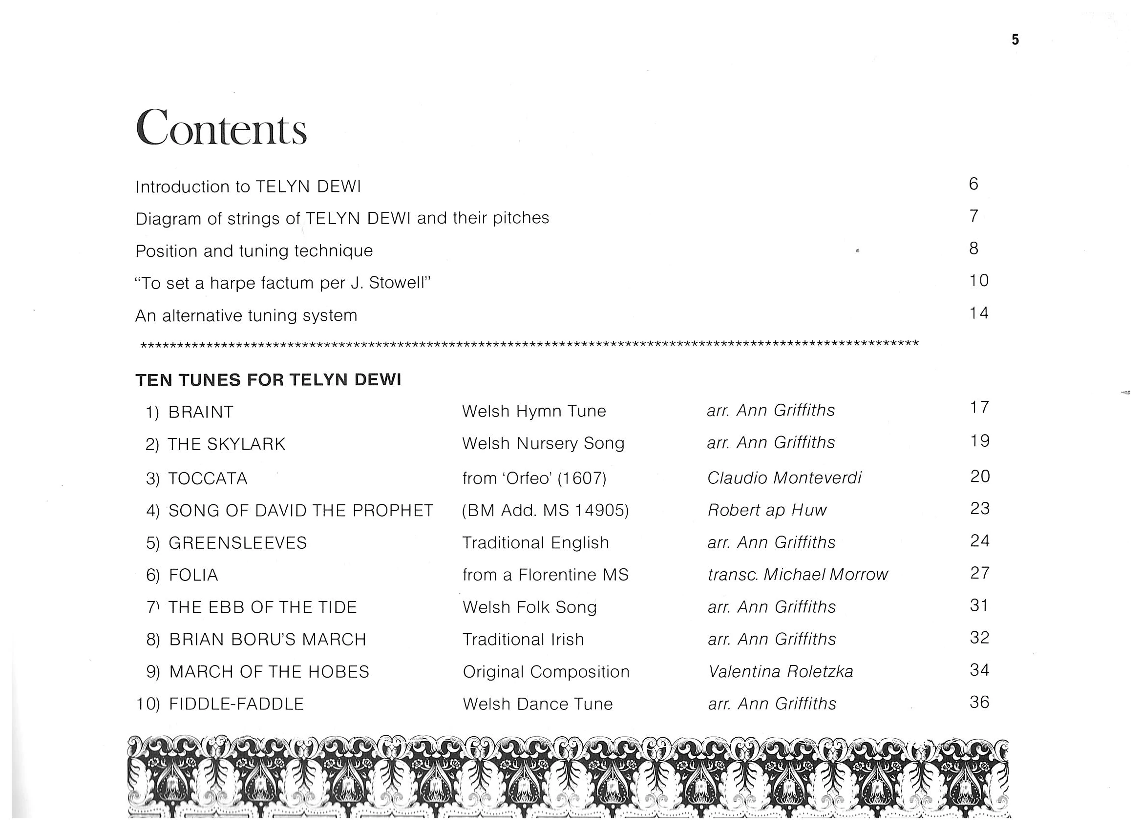 Enthält Anleitungen und Stücke für eine 26-saitige Hakenharfe ohne Halbtonklappen.